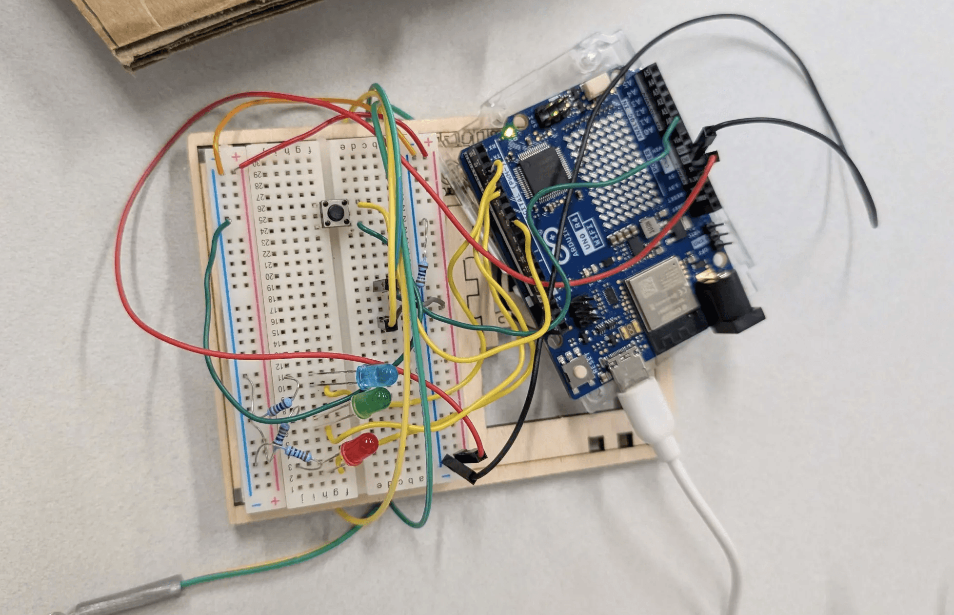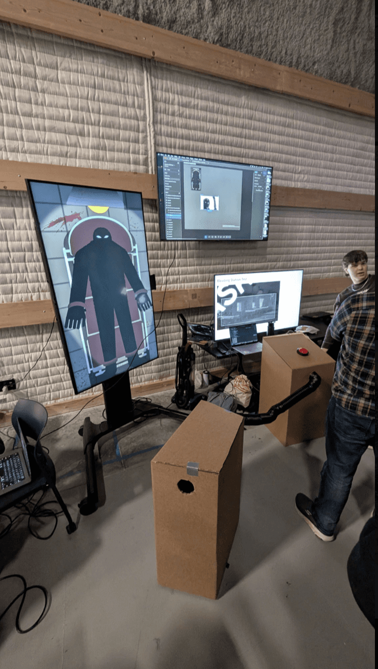 During this time we worked on creating cardboard mockups of the podiums, as well as getting some of the interactions to work. We also worked on creating a digital interface that would let users know if the cables were connected, as well as show them tasks that needed to be done and their progression on these tasks.